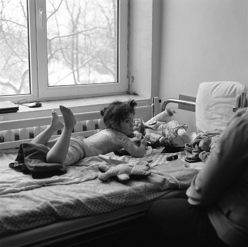 The third room on the right, the bed to the left of the door, laid Alex. She looked no more than twelve or thirteen – much older than the rest of the patients. Our translator, Jenechka, spoke with the woman standing next to Alex much more than any time before. The young girl looked frail, tired, dazed, and emotionally detached. When I asked to take her photograph, the woman next to her snatched a hat to cover her bare head and fiddled with the girl’s blankets before she seemed satisfied with Alex’s appearance. I doubt Alex cared much. It seemed a vain attempt between her lack of hair, her washed out skin, and feet and ankles engulfed in gauze bandages. I pressed the shutter knowing this was the only way I would ever see her – always in this bed, under these blankets, hat covered head, and gauzed feet. Before I could learn anything about her condition, we were pulled into the next room. My time in the hospital was over before I realized we had left the last room.